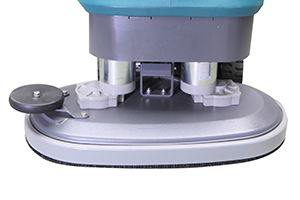 清洗易控、低操作成本的大中型手推式全自動洗地機,帶兩個洗地刷,設備的驅動以及刷盤的轉動,通過功率強大的電子馬達控制。只要一次操作,機器就可以刷地、吸干大面積的地面。由于主系統強大的吸水馬達,以及聚乙烯水箱和后置面板的獨立操作,使得機器的噪音非常低。