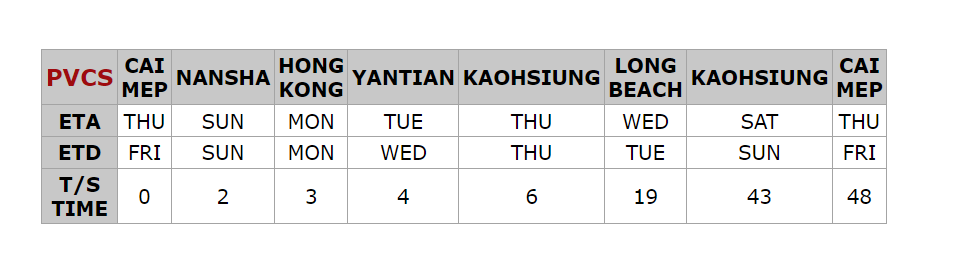 船期、時效、掛靠碼頭信息: